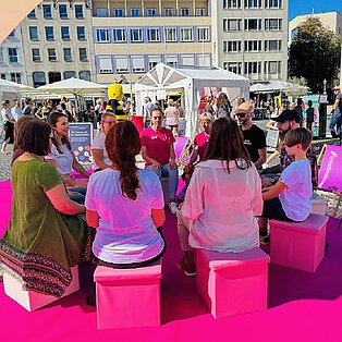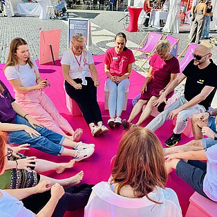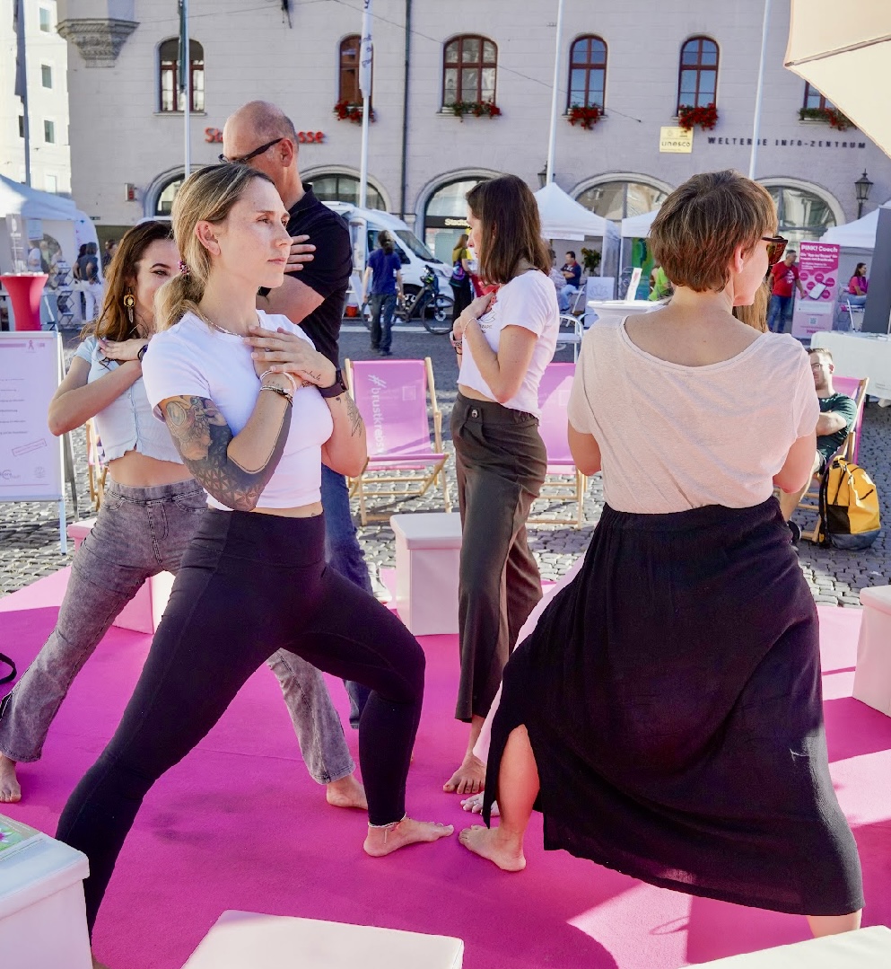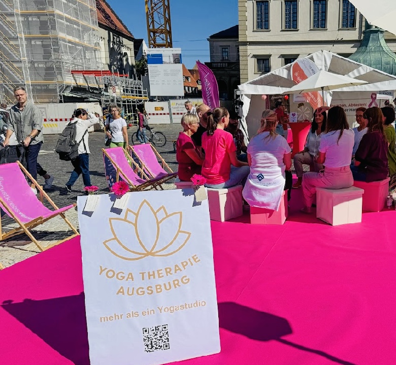 🤍 Rückblick: Yoga Therapie Augsburg am Rathausplatz beim Brustkrebstag 2025